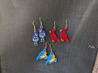 Here's a photo of three earrings I made of birds, Blue Jay, Cardinal, Eastern Bluebird. The patterns are all from a designer in Texas and they'll all be available at Cleveland Bazaar's Westside Market on Saturday, July 19th.